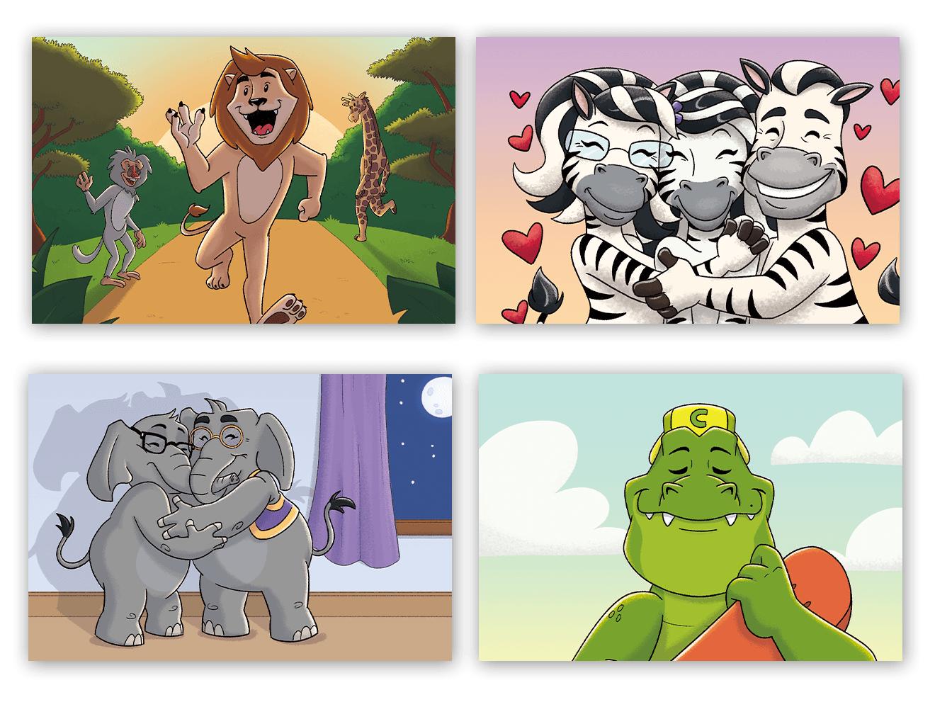 Junte-se ao leão, a zebra, a onça, ao elefante e ao crocodilo em histórias que ensinam a lidar com emoções de maneira saudável.